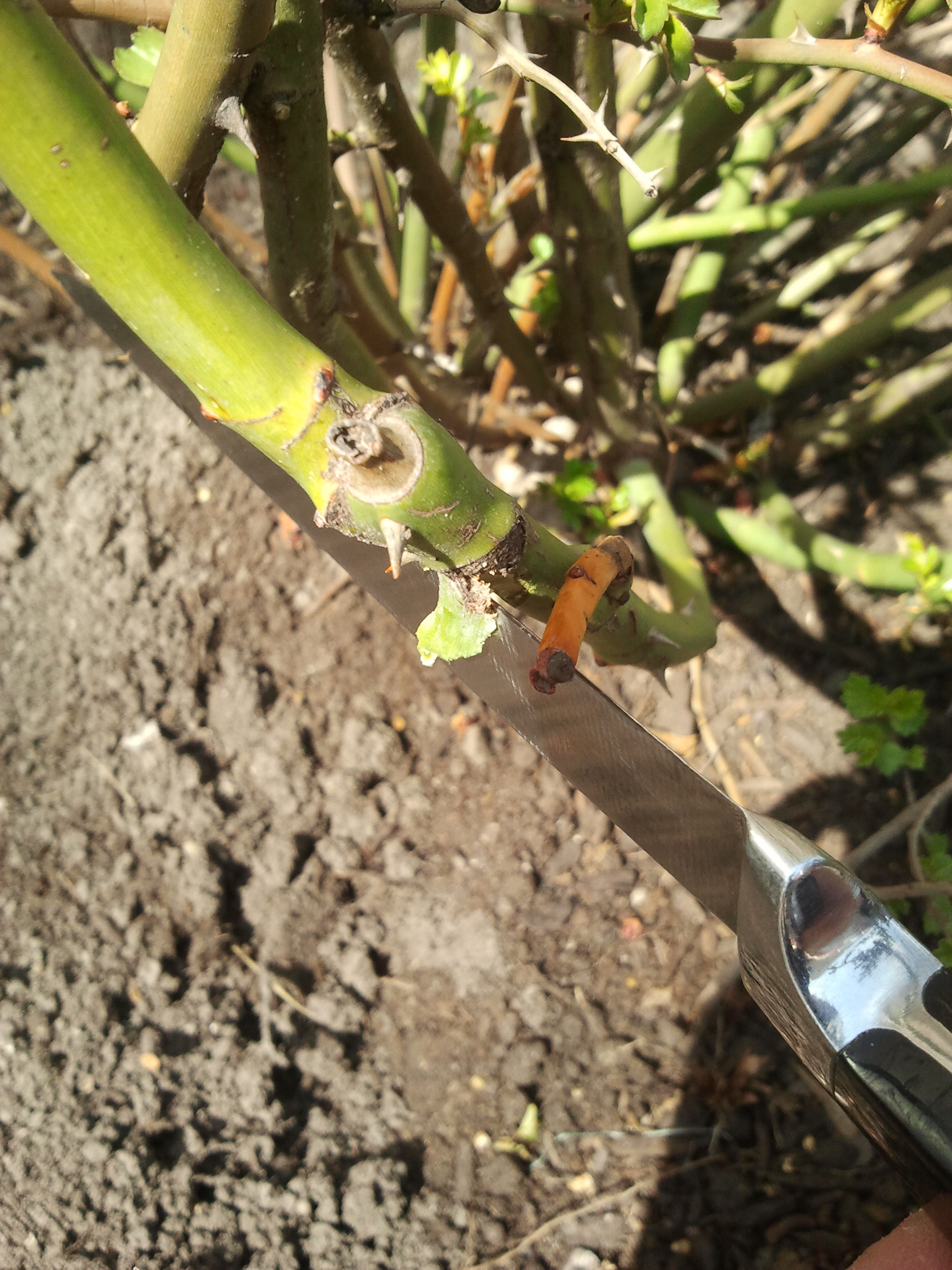 Potrzebny ostry sekator i dobre rękawice. Przycinam róże wczesną wiosną (jesienią ścinam wszystkie galązki, które miały kwiaty, okolo 2-3 oczka nad nimi), tuż po pojawieniu sie pierwszych zawiązków, pierwszych pączków, które sa jeszcze wielkościa ziarenka słonecznika. Niektórzy obawiają się mocnego cięcia, zeby nie uszkodzić rośliny. Jest odwrotnie. Mocniej przycięta róża będzie miala więcej kwiatów. Najpierw usuwam martwe i suche galązki. Pozniej tnę wszystkie pod kątem 45 stopni na wysokość lekko ponad 1 metr. Następnie spulchniam płytko ziemię, żeby poprawic jej oddychanie. Wiosną (i jesienią) powinno wykonać sie ściólkowanie, które poprawi odporność rośliny na szkodniki i choroby. Podlewam w okresie letnim co drugi dzień, ale obficie. W upalne dni nawadniam codziennie. Chociaż wszyscy radzą podlewanie rano, to ja mam na to czas dopiero wieczorem. Nigdy to nie szkodzilo. Ta róża kwitnie i rośnie pięknie, i obficie. W zeszlym roku zasilałam ja co ok 10 dni nawozem z SCHULTZ „Rose Food”. Ale dwa lata temu uzywalam MIRACLE GROW „Bloom Booster”. Obydwa polecam. Kupuję te, ktore rozpuszcza się w wodzie i stosuję je na wszystkie kwiaty w ogrodzie.