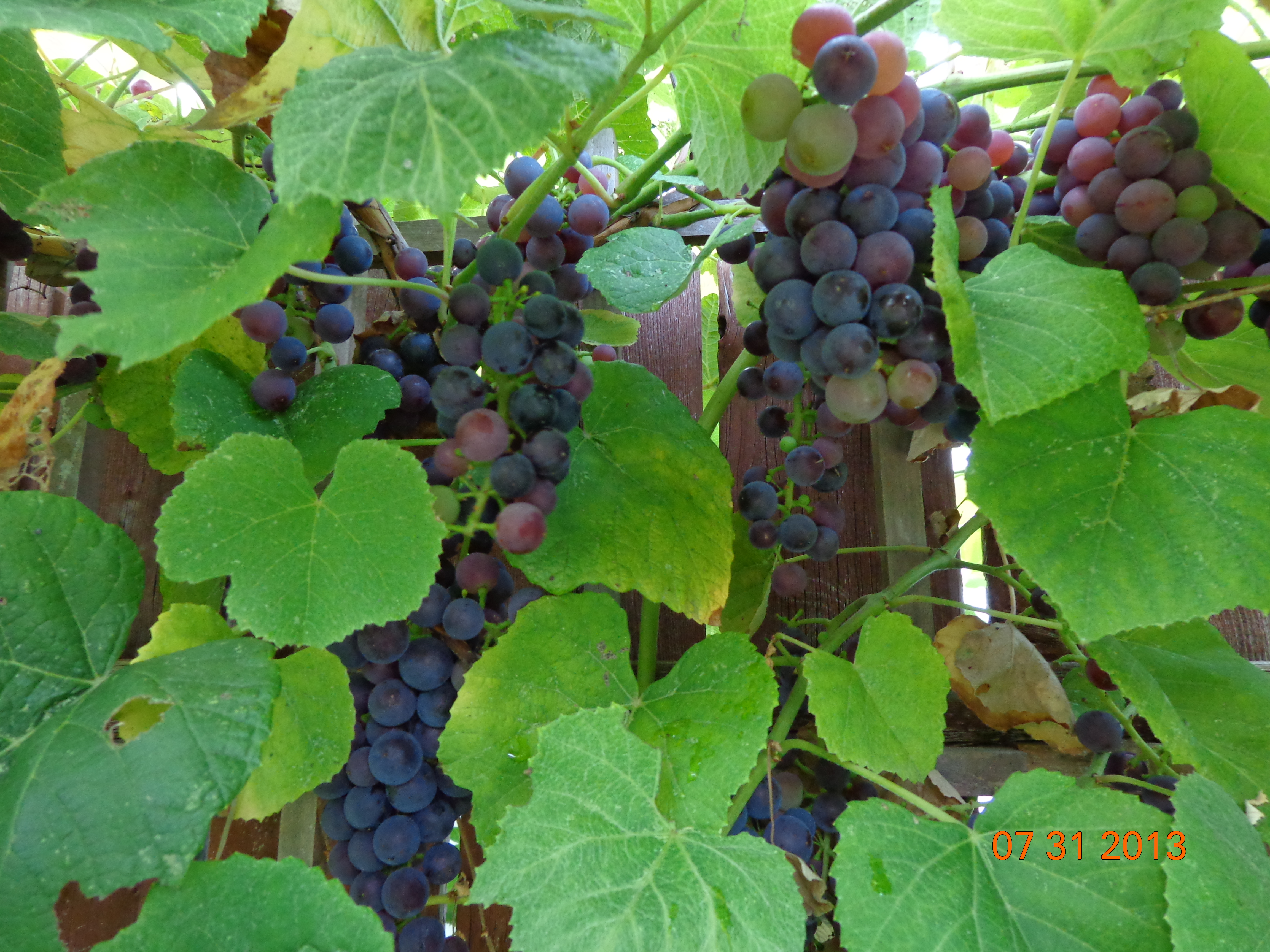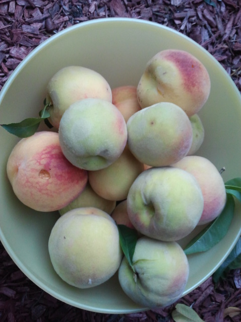 Dojrzewają owoce i trzeba je stopniowo, ale systematycznie zrywać. Pozostawione, pospadają i szybko podgniją. Sa mniej wytrzymałe na obicia, bo nie są niczym pryskane. Są zdrowe! Pierwszy rok mieliśmy bardzo dużo winogrono. Którejś nocy opos wyniósł z ogródka wszystko zostawiając może trzy kiscie. Podobno oposy czekają na ten dzień, kiedy owoc jest już gotowy do oberwania. Jeżeli to prawda, to na przyszły rok przypilnuję tego. Mamy kilkuletnią brzoskwinię. Ma duże, pyszne owoce. Mam ochotę spróbować je suszyć w piekarniku, ale mamy w tym tygodniu piekarnik na dworze i boję się, że klimatyzacja nie nadąży z chłodzeniem.